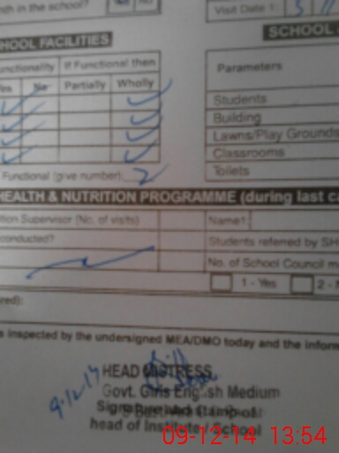 | Certified that this School was Inspected by the Undersigned MEA/DMO Today and the Information Stated Above is as Per Record. | |||||