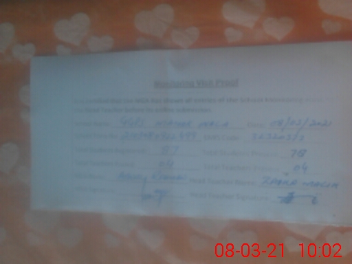 | Attendance Register | Head Teacher | MEA with School | Visit Proof |