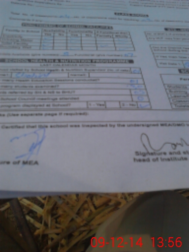 | Certified that this School was Inspected by the Undersigned MEA/DMO Today and the Information Stated Above is as Per Record. | |||||