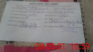 | Monitoring Date: 08-03-2021 | Start Time: 08-03-2021 10:20 AM | End Time: 08-03-2021 11:01 AM | Name of MEA: Gh**** Al**** | |