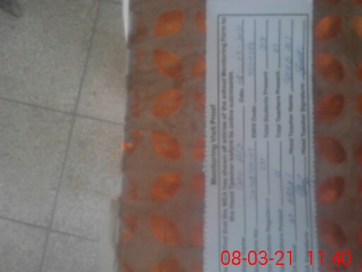 | School Visited by School Health & Nutrition Supervisor (No. of Visits) | 1 | Name1: | M UMER | Name2: | NIL |