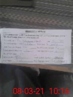 | Monitoring Date: 08-03-2021 | Start Time: 08-03-2021 10:04 AM | End Time: 08-03-2021 10:16 AM | Name of MEA: Sa**** Hu**** | |