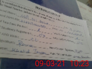 | Name: ZU**** SH**** Designation: (School Headmaster's/Headmistress's) ESE Phone/Cell Number: 03**** |
