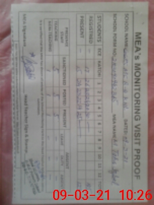 | Monitoring Date: 09-03-2021 | Start Time: 09-03-2021 09:42 AM | End Time: 09-03-2021 10:27 AM | Name of MEA: M.Ta**** Iq**** (S**** | |