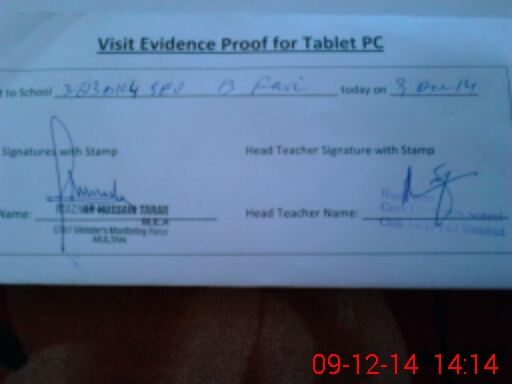 | Attendance Register | Head Teacher | MEA with School | Visit Proof |