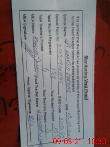 | EMIS Code: 31150425 | Name of School: GPS MASJID FARDOUS | |||