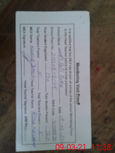 | Certified that this School was Inspected by the Undersigned MEA/DMO Today and the Information Stated Above is as Per Record. | |||||