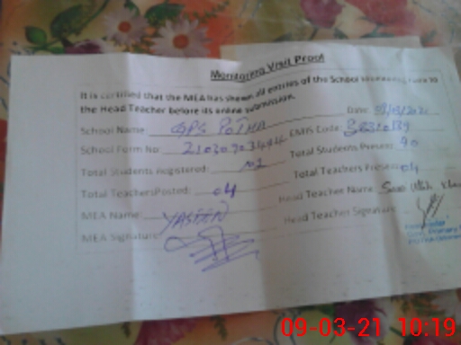 | EMIS Code: 38310139 | Name of School: GPS POTHA | |||