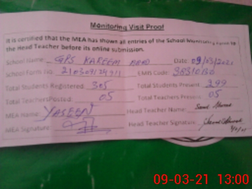 | EMIS Code: 38310130 | Name of School: GPS KAREEM ABAD KALABAGH | |||