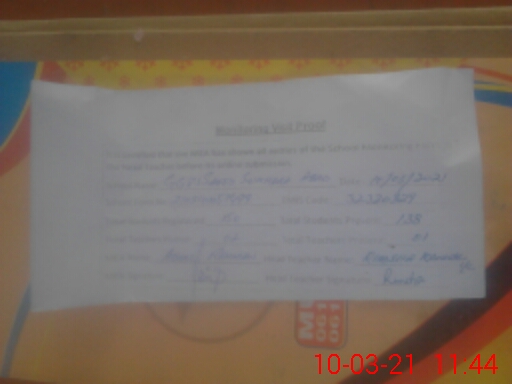 | Attendance Register | Head Teacher | MEA with School | Visit Proof |