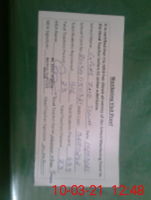 | Certified that this School was Inspected by the Undersigned MEA/DMO Today and the Information Stated Above is as Per Record. | |||||