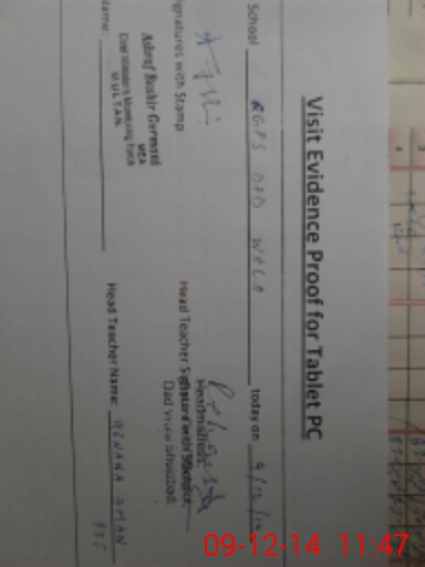 | Attendance Register | Head Teacher | MEA with School | Visit Proof |