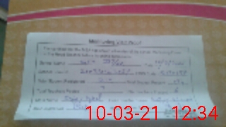 | Monitoring Date: 10-03-2021 | Start Time: 10-03-2021 12:21 PM | End Time: 10-03-2021 12:35 PM | Name of MEA: Za**** Iq**** BN**** | |
