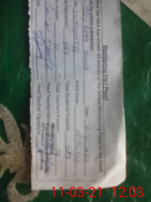 | School Visited by School Health & Nutrition Supervisor (No. of Visits) | 1 | Name1: | Shakil Latif | Name2: | |