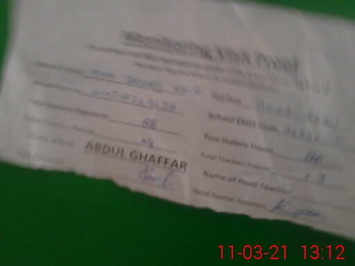 | Attendance Register | Head Teacher | MEA with School | Visit Proof |