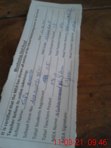 | Attendance Register | Head Teacher | MEA with School | Visit Proof |