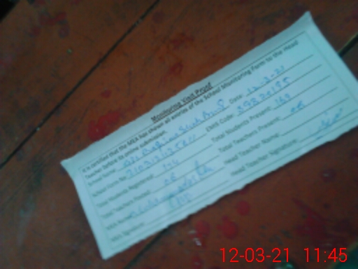 | Attendance Register | Head Teacher | MEA with School | Visit Proof |