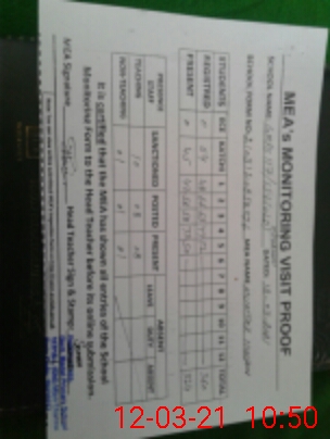 | Certified that this School was Inspected by the Undersigned MEA/DMO Today and the Information Stated Above is as Per Record. | |||||