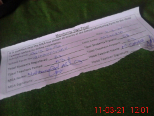 | Attendance Register | Head Teacher | MEA with School | Visit Proof |