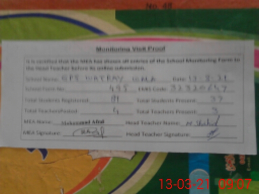 | EMIS Code: 32320647 | Name of School: GPS WATRAY WALA | |||