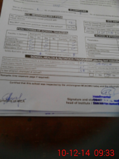 | Certified that this School was Inspected by the Undersigned MEA/DMO Today and the Information Stated Above is as Per Record. | |||||