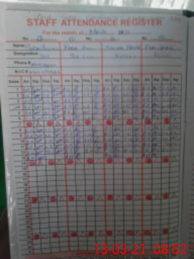 | CNIC | Full Name | Designation | R/C | Absence During Last Calender Month |