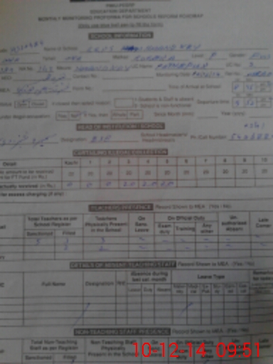 | Monitoring Date: 10-12-2014 | Start Time: 10-12-2014 09:28 AM | End Time: 10-12-2014 09:51 AM | Name of MEA: SH**** AL**** ZI**** (R**** | |