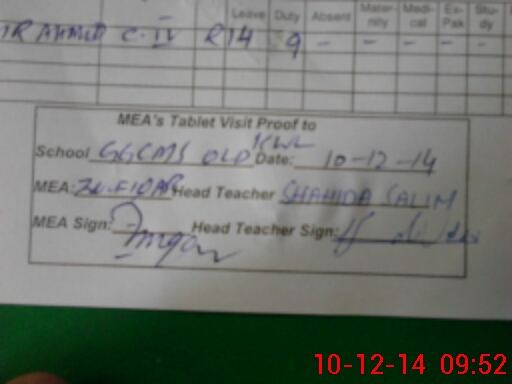 | Attendance Register | Head Teacher | MEA with School | Visit Proof |