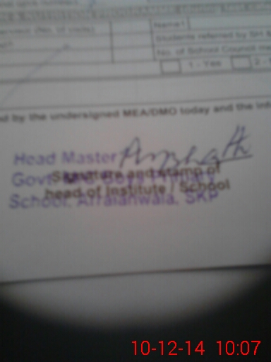 | Name: Mu**** Im**** Designation: (School Headmaster's/Headmistress's) PST Phone/Cell Number: 03**** |