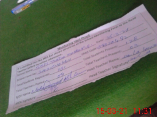 | Attendance Register | Head Teacher | MEA with School | Visit Proof |