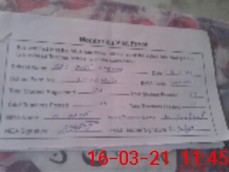 | Monitoring Date: 16-03-2021 | Start Time: 16-03-2021 10:55 AM | End Time: 16-03-2021 11:47 AM | Name of MEA: Mu**** Ha**** BN**** 32 | |