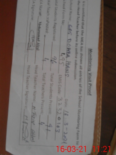 | EMIS Code: 32320103 | Name of School: GPS DOABA HANS | |||