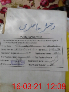 | CNIC | Full Name | Designation | R/C | Absence During Last Calender Month |