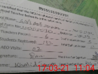 | Name: GH**** IS**** Designation: (School Headmaster's/Headmistress's) PST Phone/Cell Number: 03**** |