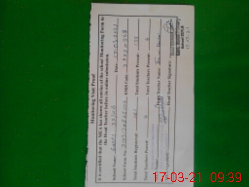 | Attendance Register | Head Teacher | MEA with School | Visit Proof |