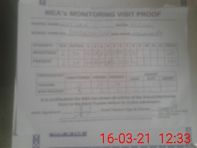 | Certified that this School was Inspected by the Undersigned MEA/DMO Today and the Information Stated Above is as Per Record. | |||||