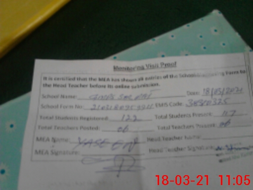 | Attendance Register | Head Teacher | MEA with School | Visit Proof |