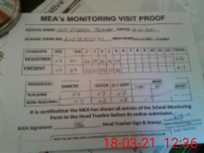 | Attendance Register | Head Teacher | MEA with School | Visit Proof |