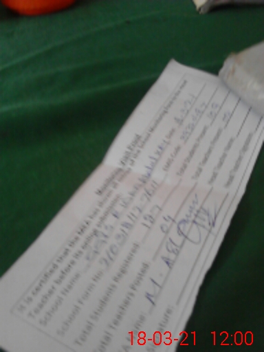 | Name: Sh**** Pe**** Designation: (School Headmaster's/Headmistress's) PST Phone/Cell Number: 03**** |