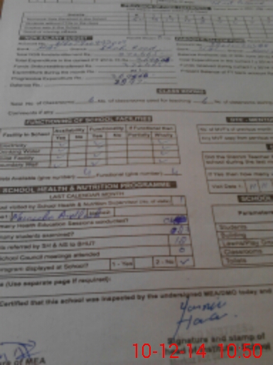 | Certified that this School was Inspected by the Undersigned MEA/DMO Today and the Information Stated Above is as Per Record. | |||||
