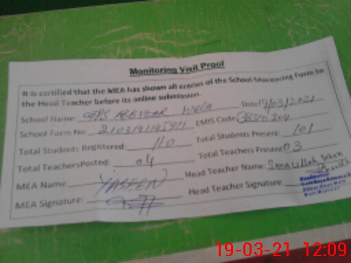 | Certified that this School was Inspected by the Undersigned MEA/DMO Today and the Information Stated Above is as Per Record. | |||||