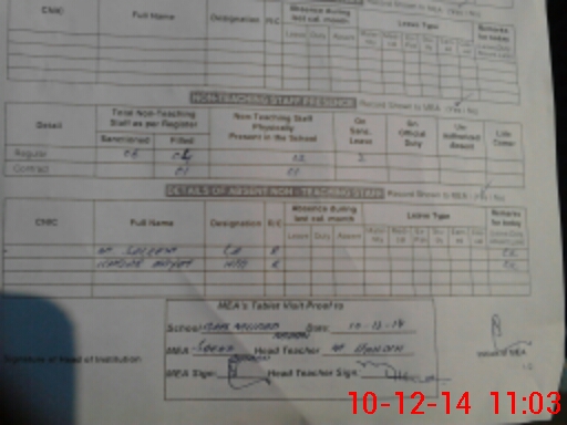 | Attendance Register | Head Teacher | MEA with School | Visit Proof |