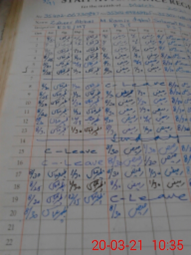 | CNIC | Full Name | Designation | R/C | Absence During Last Calender Month |