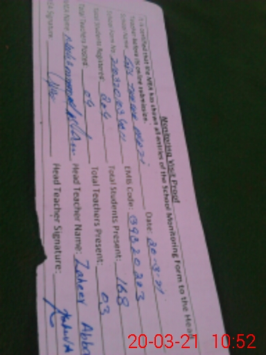 | Attendance Register | Head Teacher | MEA with School | Visit Proof |