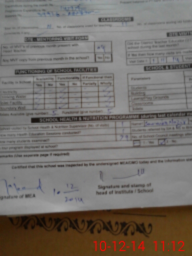 | Certified that this School was Inspected by the Undersigned MEA/DMO Today and the Information Stated Above is as Per Record. | |||||