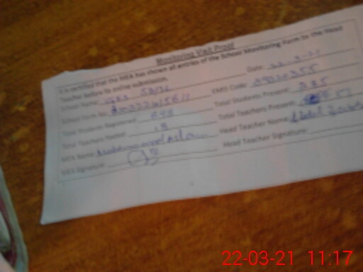 | Attendance Register | Head Teacher | MEA with School | Visit Proof |