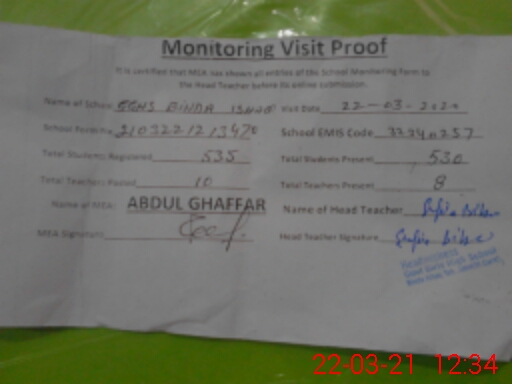 | EMIS Code: 32340257 | Name of School: GGHS BINDA ISHAQ | |||
