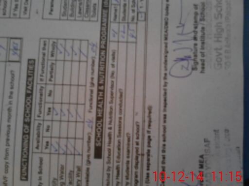 | School Visited by School Health & Nutrition Supervisor (No. of Visits) | 1 | Name1: | Kashif Bashir | Name2: | |