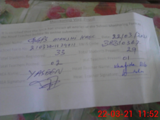 | EMIS Code: 38310367 | Name of School: GGPS MANJHI KHEL | |||