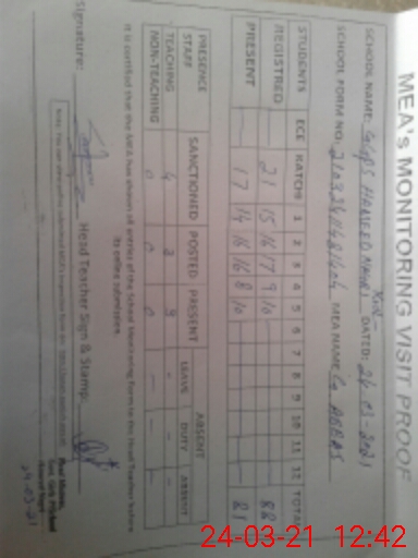 | Attendance Register | Head Teacher | MEA with School | Visit Proof |